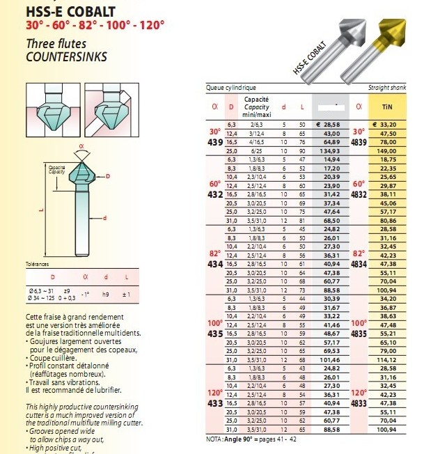 锪钻 倒角刀;度数有|45度 90度 82度 120度60度(三齿)三刃 直柄,(单齿) 单刃 深沟槽 大排泄。刀锋更锋利。 很好的排屑 加工沉头 孔以及去毛刺。倒角和锪钻使加工物件表面光滑通顺,排屑顺畅、导向功能平滑,在切削时加入润滑油,可更能体现他的锋利度。不会出现被切勿体出现肌瘤。倒角刀(倒角器)锪钻。表面处理有涂层和不涂层,(两款可选用)表面氮化钛涂层;耐磨;使用寿命长,切削速快 切削速度可调(等可调式更高速度)可分为,莫氏锥柄和直柄; 特别适合钻削HSSE模具钢、不锈钢、45号钢及软材质的有色金属的沉头加工;可选择国产的和进口的 ;白钢高速钢 含钴高速钢 钨钢焊刃 钨钢整体 白钢整体。等多款选择。有需要敬请联系立浩数控销售电话0769-8532628现货供应德国90°三刃双头钨钢合金锪钻倒角刀。东莞市立浩五金科技有限公司长期供应德国倒角刀,日本倒角刀,钨钢合金倒角刀锪钻,高钴钢倒角刀锪钻,按度数分90度,60度,120度,100度,82度,非标可定做。钨钢合金倒角刀锪钻适合适合高速CNC加工HRC65度以内所有材质,刃口锋利,排屑顺畅。高钴钢倒角刀锪钻适用于加工钢材、铸铁件、有色金属和轻金属。低速加工切削效果更好。锥形圆弧锪钻常用于大部分材料在钻孔后的去毛刺,倒角或扩孔;锥面上具有连续后角,刃口钝后只需重磨前刀面即可恢复锋利。采用进口高性能的含钴高速钢或硬质合金材料,耐磨性高,使用寿命长,CBN砂轮全磨制造确保光洁度好,刃口锋利; 合理的大圆弧槽确保排屑更轻快; 大前角利于高效切削; 锥面上具有连续后角,易于刃口重磨; 切削热低,加工平滑顺畅; 理想的自定心能力; 加工出的产品光滑无振纹,没有顿挫感,是最好用的倒角刀。 |